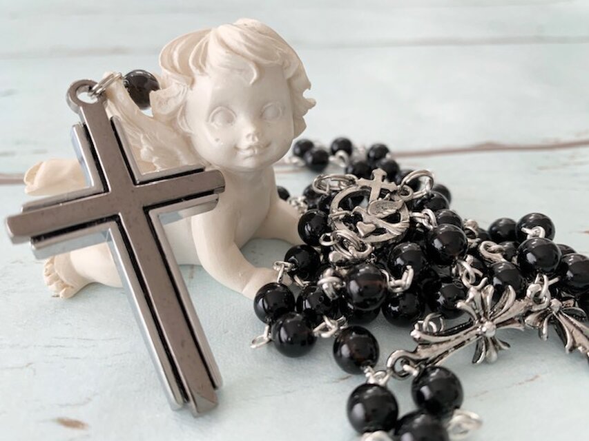 天然モリオン(カンゴーム)を使用したロザリオです。