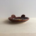 陶磁器用絵具で彩色し、全体にアメ釉を施しています。
