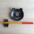 クマの顔型に切り出した黒荒土製の豆皿です。