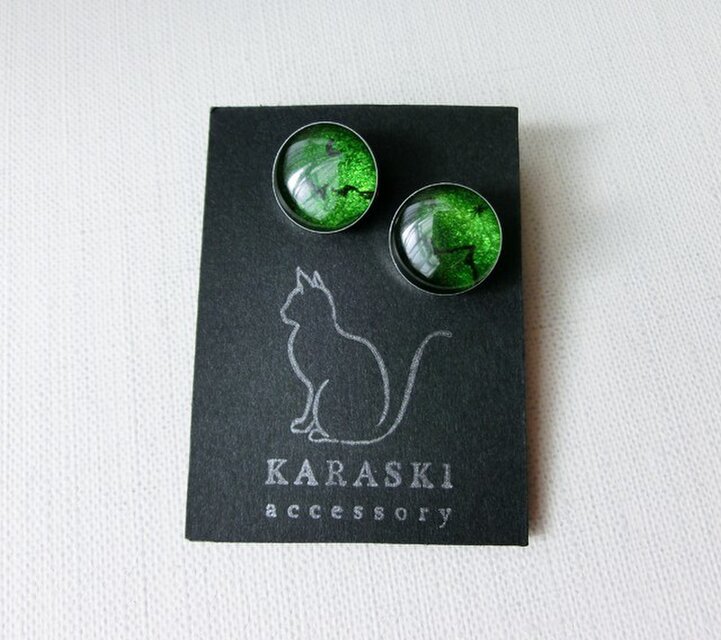 手描きのオリジナルイラストをレジンで閉じ込めたピアスです。