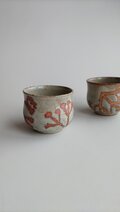 ガス窯での焼成で、窯の場所によって色合いが変わります。