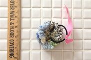 お花へアゴムを2こ、3こと重ね付け、かごバッグなどにつけるのもオススメですよ♪