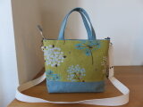可愛らしい花柄生地とウオッシュ加工の帆布でファスナー付きショルダーバッグを作りました。
