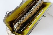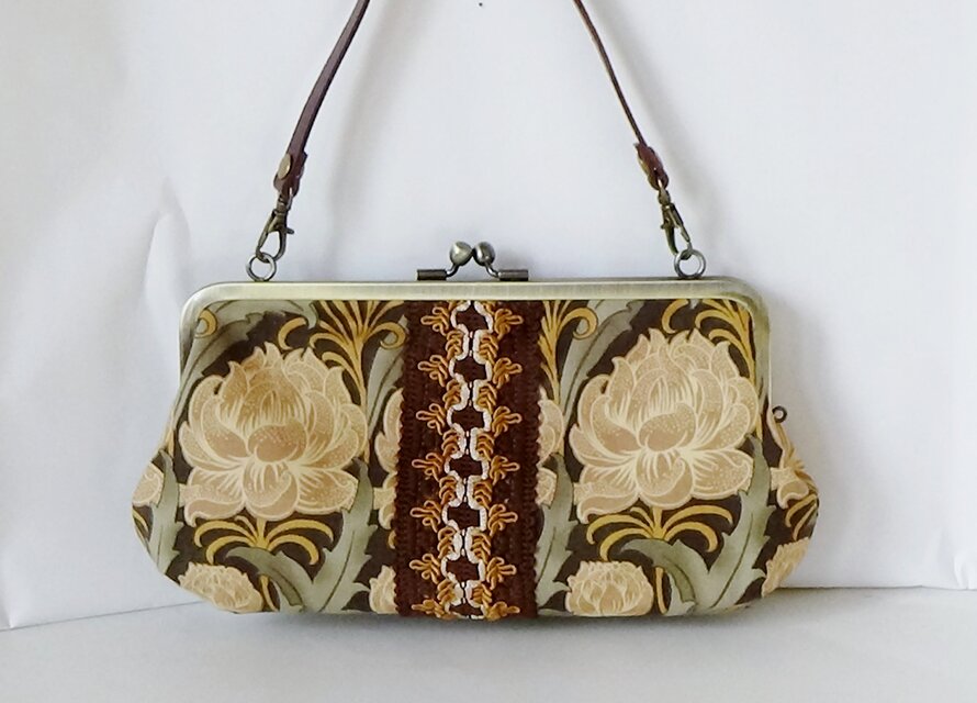 ウイリアムモリス オスウィンのがま口長財布持ち手付きです