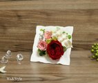 真っ白な陶器のフレームの中には、ローズをアレンジ。