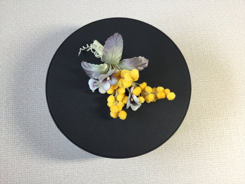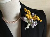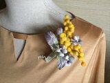 そんな季節が感じられるミモザとスミレのコサージュにしました。