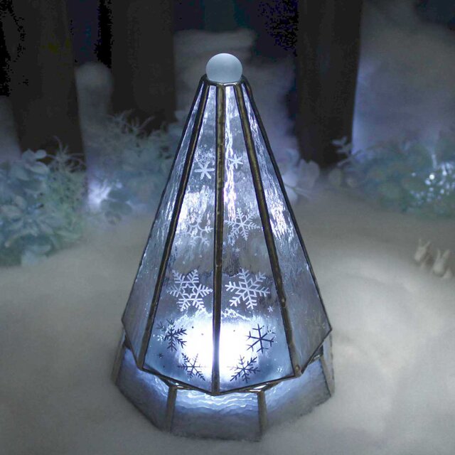 こんばんは(^^) 本日無事に受け取りました! 小さくて可愛らしいですが、しっかりとステンドグラスの美しさが備わっていてとても素敵な作品です♪ 樹氷のクールな白い光、綺麗です!