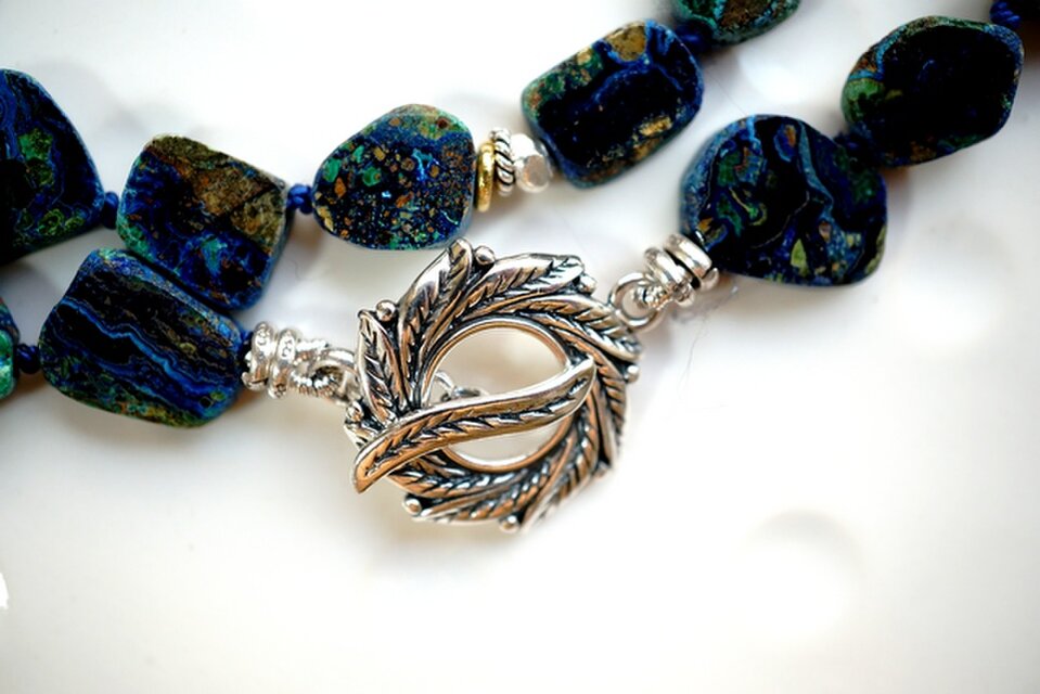 【素材】アズラマラカイト・ゴールドプレイテッドビーズ・シルバー925ビーズ・グリフィン糸・シルバー925留め金
