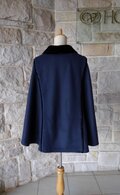 【エレガントケープコート】あったかメルトン生地 スモーキーネイビー ウール100% × クラッシュベロア 黒