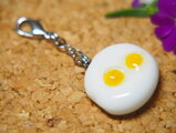 ガラスの目玉焼きがゆらゆら揺れるチャームです