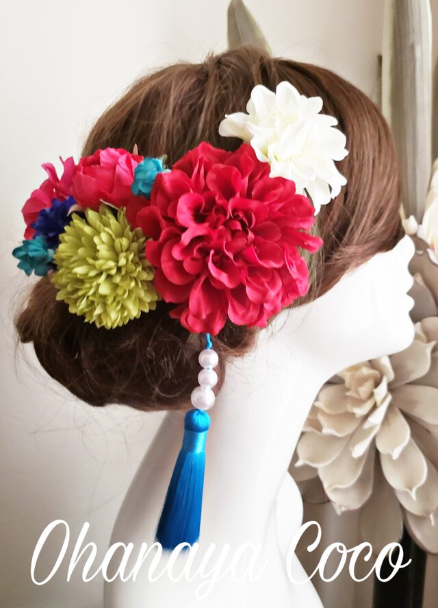 #和装 #造花 #白無垢 #成人式 #袴 #大正ロマン #髪飾りオーダー #キュート #和モダン #和風レトロ #タッセル #袴髪飾り #和装小物