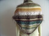 様々な手編み糸を使用した三角ショールです。