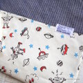 落書きしたようなかわいいイラストのロボットやUFO、ロケットがプリントされた生地と