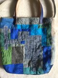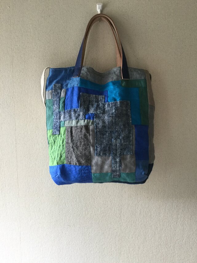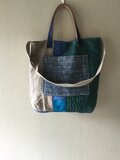 リネンと手織りコットンのコラージュバッグ「青い街角」