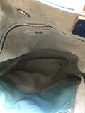 グレイッシュブルーの色合いが何とも言えない雰囲気があり素敵でした。赤い紐のステッチは、最初はビーズかしら、と思ったほど立体感があります。ブルーの背景に効いてアクセントとなっていますね。 この季節の良い時期にカジュアルに斜め掛けしてお出掛けしたいです。 この度も素敵な作品をありがとうございました。