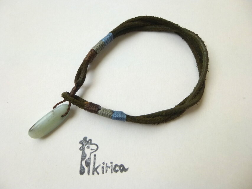アマゾナイトの天然石をボタン代わりにしたブレスレットは