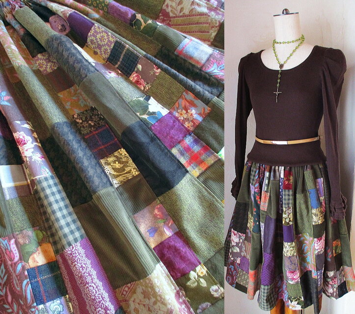 深い赤色系ギャザーマキシとっても素敵。赤系マルチカラーティアードマキシと見比べどっちもも可愛い~可愛い~と連呼、うっとりしています。お作りがとても丁寧で美しく、パーツ生地の並びも最も濃い色(黒地に花柄等)が良い間隔で分散配置されていて素晴らしい。平太ゴムの具合もちょうど良い自然な乗っかり感。年配者なのですがおすすめの作品です。迷われている方はぜひご注文を、と思います。 ありがとうございました!