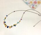 ジュエルという名のネックレス。カイアナイトとスペサルティンガーネットを中心に10種類の半貴石を色とりどりにちりばめました。美しさはまさに宝石そのものです。配色の妙をお楽しみいただきたいですね。お揃いのデザインのブレスレットとセットでいかがでしょうか。
