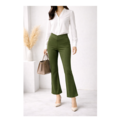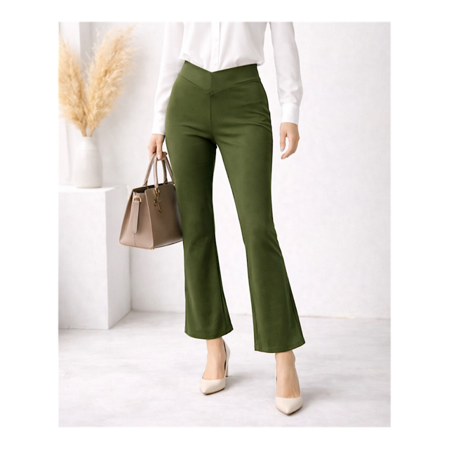 穿いている感じがしない美脚ストレートストレッチロングパンツ:7~13号対応!通年使用◎股下66/74㎝:緑モスグリーン