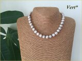 《1点のみ》【Vermeil】ライトシャンパンベージュ縞入りポテト淡水パールグリフィンショートネックレス