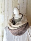 冬のダークな装いに、優しい色調でお顔が綺麗に見えるスヌードです。
