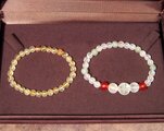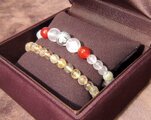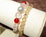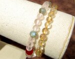 ルチルクォーツのブレスレットと、水晶やローズクォーツなどを使ったブレスレットの2本セットです。