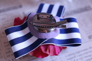 ボーダーのリボンと深い赤色の