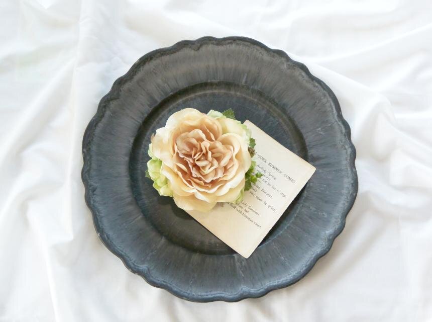 ナチュラルな雰囲気のオールドローズのコサージュ