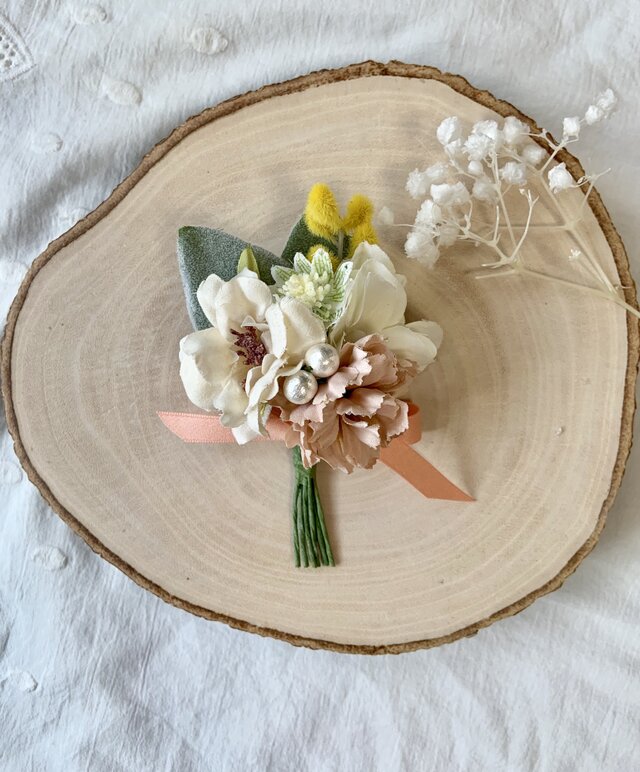 この度は、素敵なお品をどうもありがとうございました。 綺麗で可愛くてイメージ通りの作品でした。 披露宴に着ていく服に合わせたいと思います。 この度は、どうもありがとうございました。