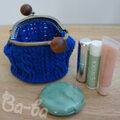 ばあば作、なわ編み模様のがま口(winterblue・C1285)