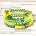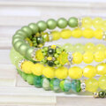 発色の綺麗なイエローのビーズや若草色のビーズに、気分まで明るくなります。