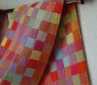 ポップな暖色系をメインにして、元気いっぱいな色合いに織りました。