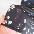 \引き締まった黒色に、白い花が散りばめられた柄。シックで大人っぽい印象の春夏用生地です/
