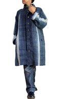 モンのインディゴバティックヘンプで仕立てたシンプルスタンドカラーコート(JNN-095-02)