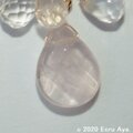 一番下に、少し大粒のマダガスカル産ローズクォーツのペアシェイプブリオレットカットを下げています。