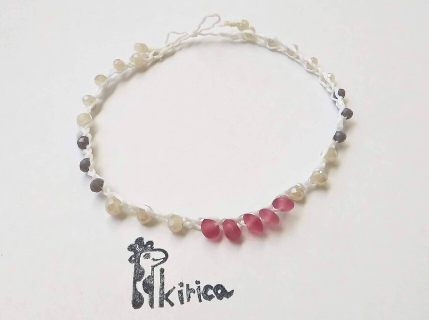つや消しピンクのガラスビーズは、長崎の作家さんの手作り。