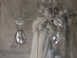 ライトグレーの大ぶりバロックパールが特徴のピアス。