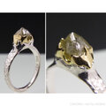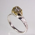 八面体をしたダイアモンドを使用した、18Kとシルバーのリング。