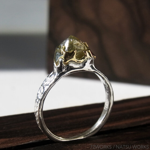 原石のままのダイヤを18金の石座で飾り、シルバーとのコンビネーションで仕上げた一品です。
