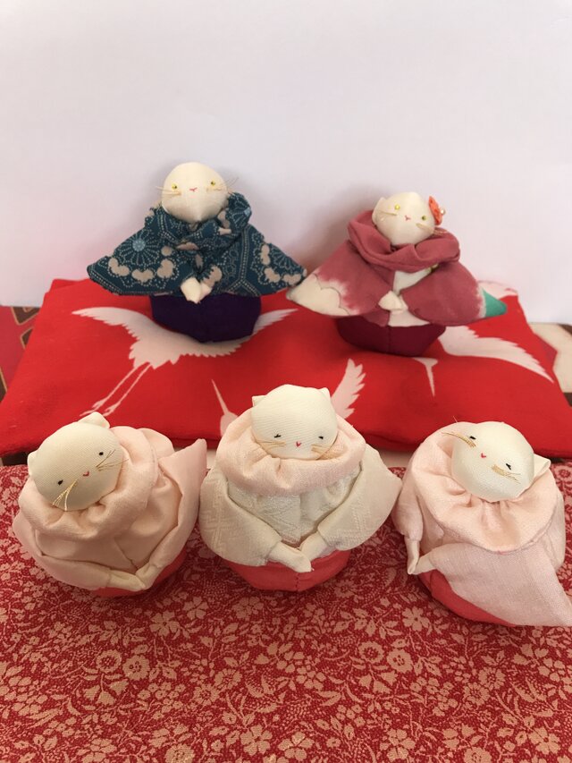※ 全て時代を経て来た布達です。古布が生まれ変わりにゃんこ雛飾りに。共感いただけたら嬉しいです。