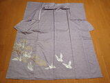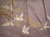繊細で美しく、薄色に総刺繍が施された鶴と松で奏で流れ、上質な優美さを加味しだす、素敵なアンティーク着物をほどいて、画像デザインのフォーマルワンピースをお作りいたします。