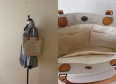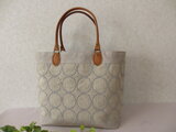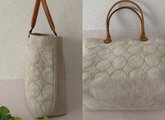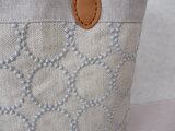 グレイッシュブルーのサークルが上品なタンバリンと生成り地(リネン)でシンプルなトートを作成しました。