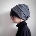 黒の麻の面のリバーシブルのターバンな帽子です。