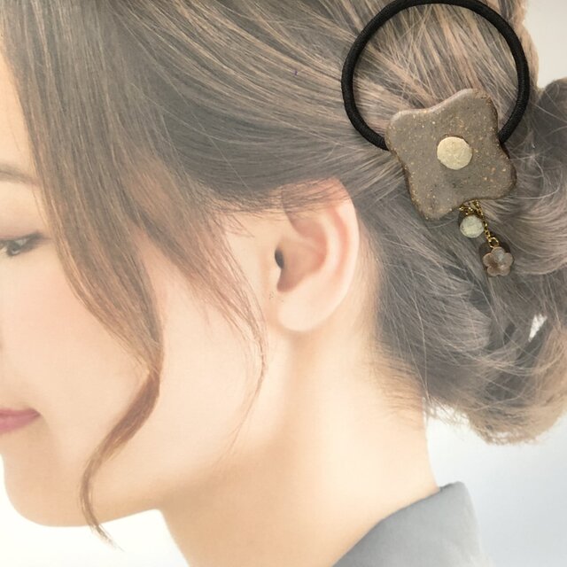 【信楽焼】優しい背中 ブローチ ヘアゴム 伝統工芸 陶器 粉引 北欧