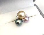 素材:白蝶金色真珠10㎜、黒蝶真珠9㎜、淡水真珠7㎜、SV(ロジウムメッキ)、キュービックジルコニア