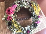 シャビーな実もそえて、華やかだけれどシックな雰囲気もあるリース。