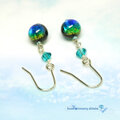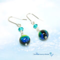 慶良間諸島の砂浜~深海をイメージしたグラデーションが美しいホタル玉とスワロフスキーが煌くピアスです。