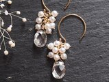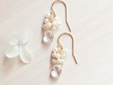 オーバルカットのホワイトトパーズに淡水パールを組み合わせたピアスです。