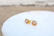 ムーンストーンのカッティングの6ミリの美しいカボッションを、ゴールドのスタッズの土台にセットしました。