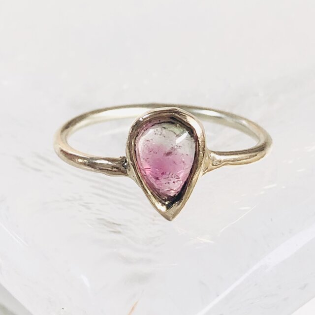 クリアとピンク、そしてほんの僅かなグリーンのバイカラーのトルマリンk10ゴールドリングです。